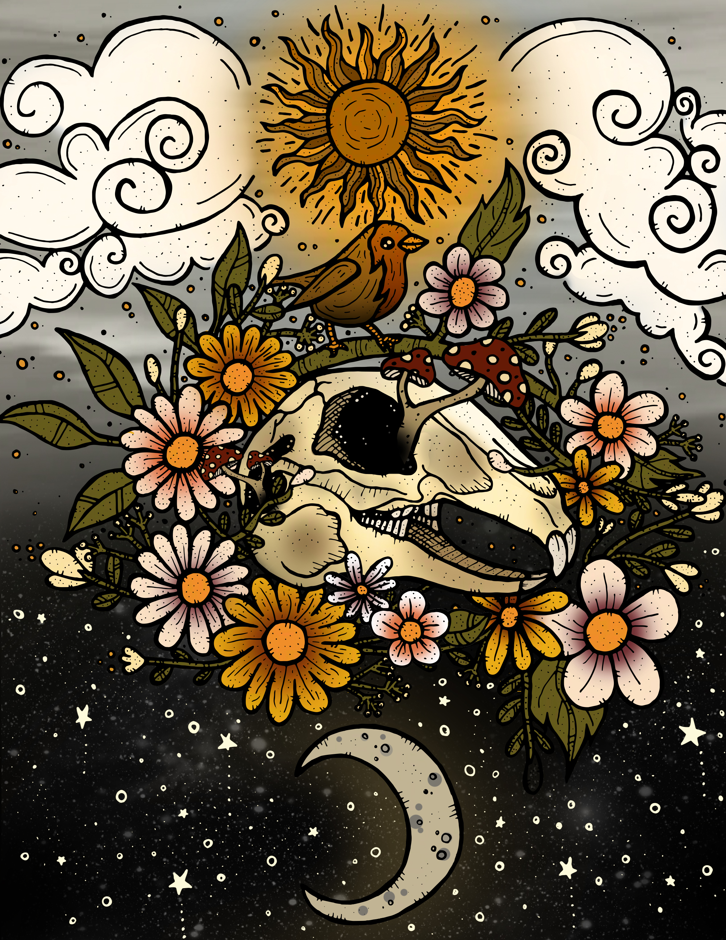 Micron on paper linework. Digitized in Illustrator. Color added in Photoshop.