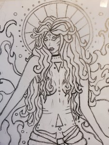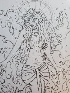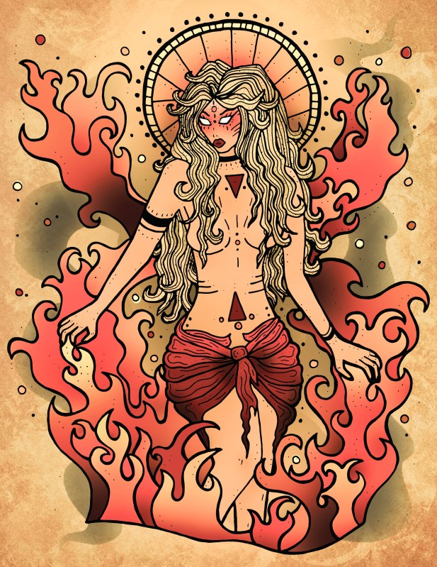 There’s something about fire though, right? It’s all power. Mesmerizing. Sensual almost. Uncontrollable. We as women all have that depth to us, even if we don’t see it just yet. Drawing this piece helped me to tap into that side of myself. That deep, dark, all knowing, powerful, sensual, beauty of a goddess.